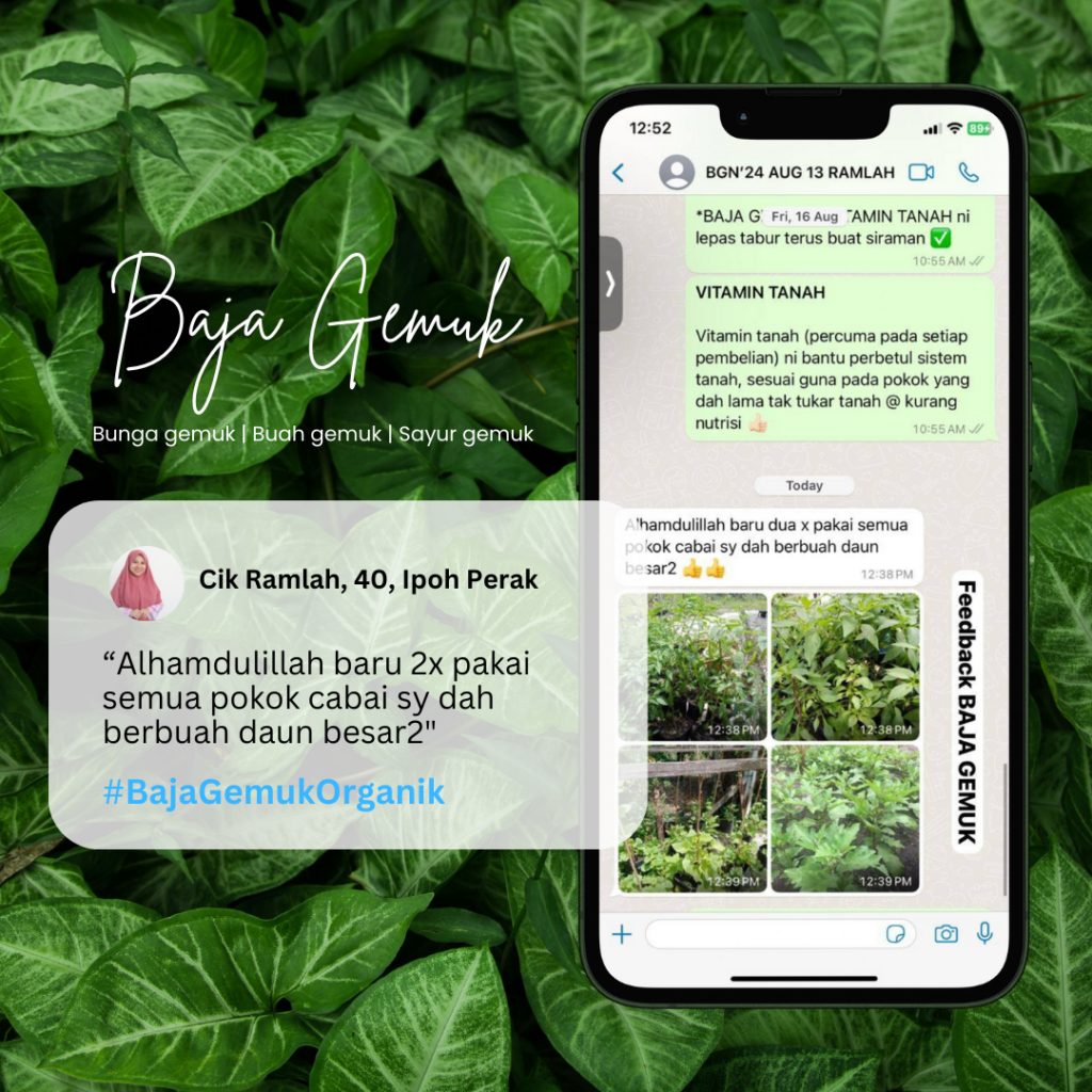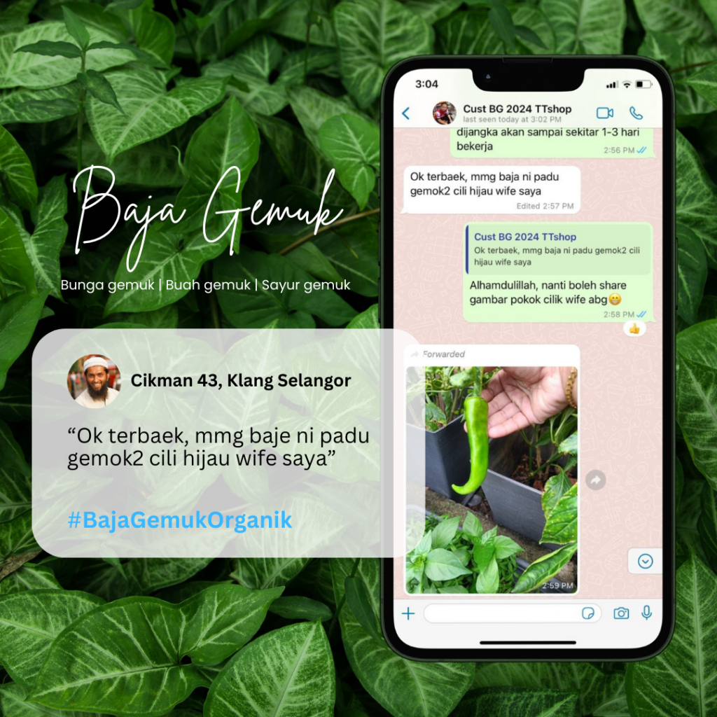 Malah dengan adanya nutrien tambahan ini dapat mengekalkan hijau daun dan tingkatkan imuniti tanaman.